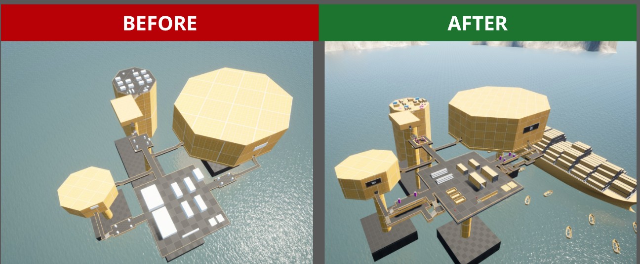 - Clarification (Color Use)—Diverse color palettes were added to reduce visual clutter, making key objects stand out and improving player readability.