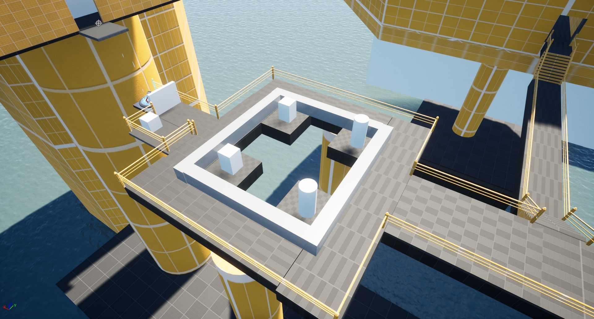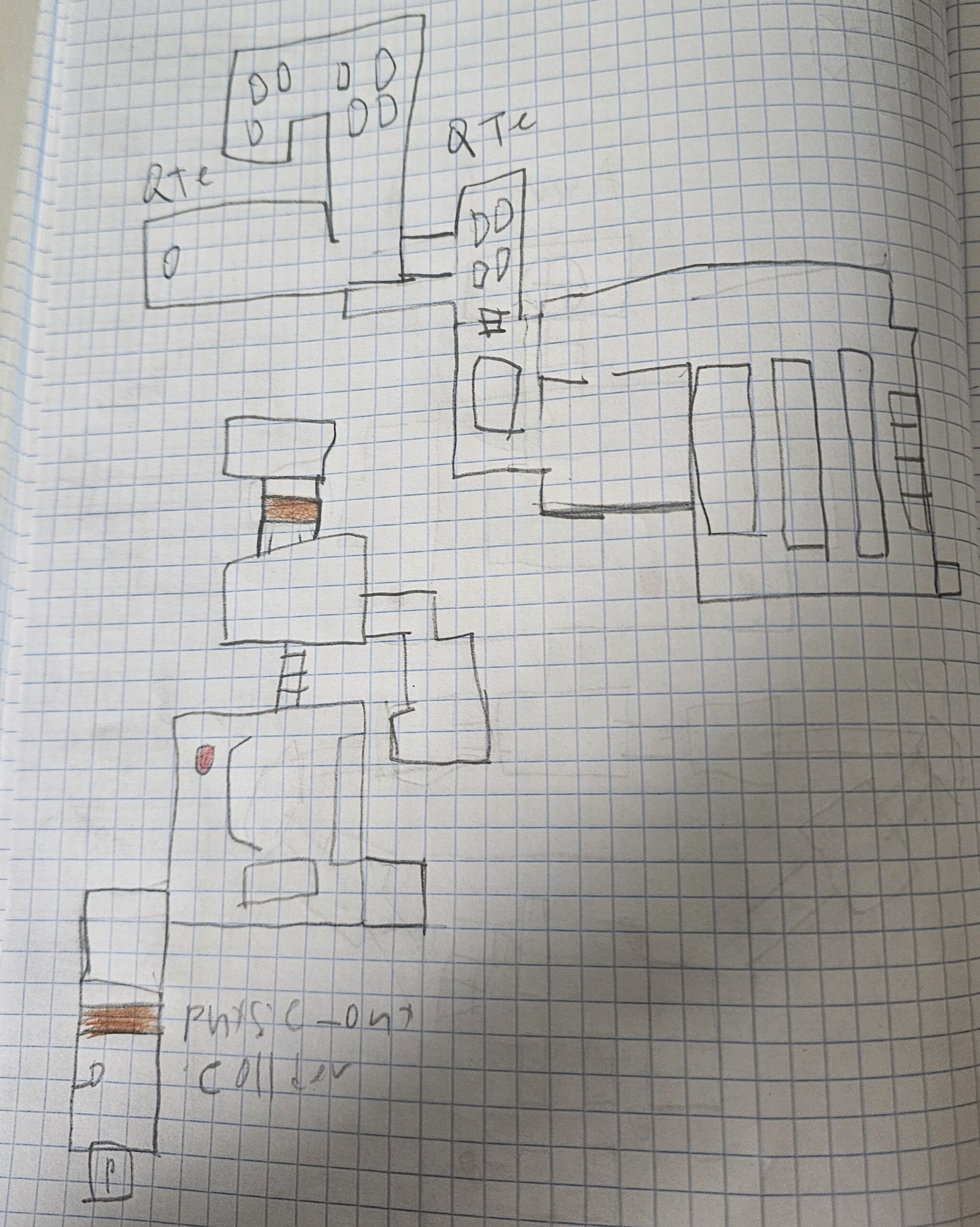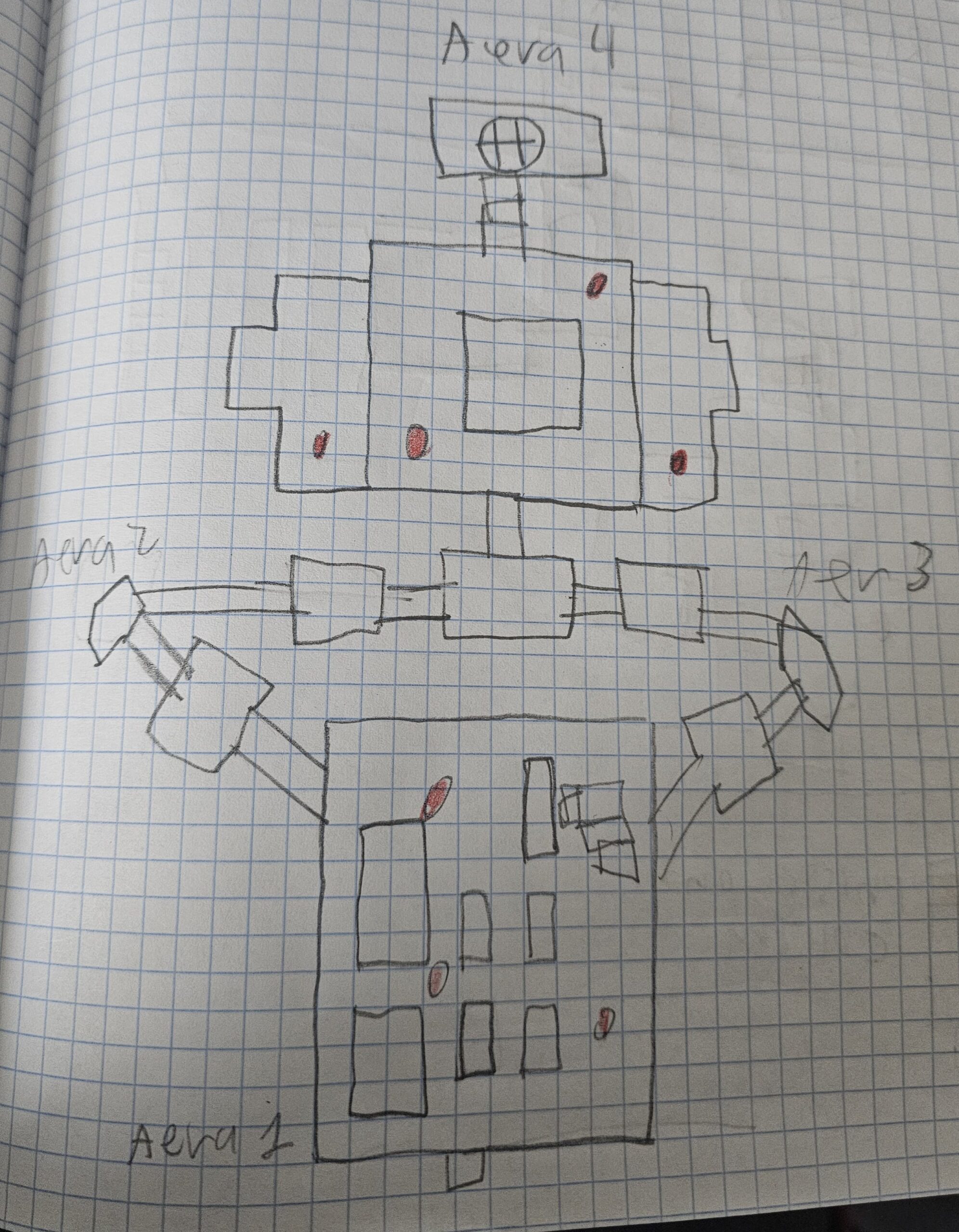 - Sketched an initial 2D level map on paper, refined it digitally in Miro, and then built a 3D blockout in-engine.