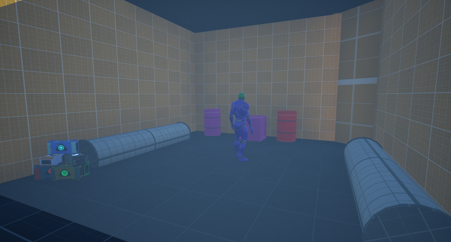 Various objects are color-coded to make them easily distinguishable — such as specific cover elements, explosive objects, and unique encounter areas.